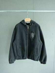 外贸跨境高品STU水洗做旧黑8刺绣夹克拉链棉服外套重磅经典情侣款