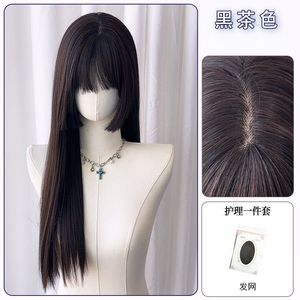 【黑茶色】公主切长直发+发网