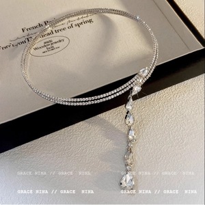 共赴晚宴~满钻超闪流苏项链女轻奢小众设计感胸链高级锁骨链颈链