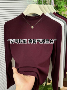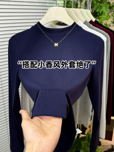 欧货新款精品羊绒长袖内搭t恤打底衫2025秋季小圆领正肩显瘦上衣