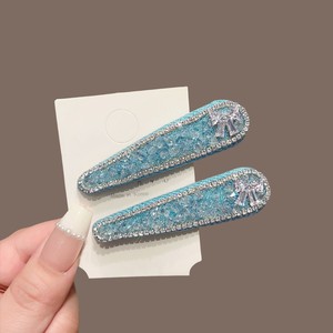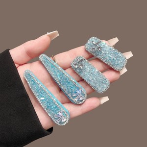 韩式高级感满钻蓝色水晶蝴蝶结发夹气质侧边刘海夹发卡夹子头饰女