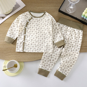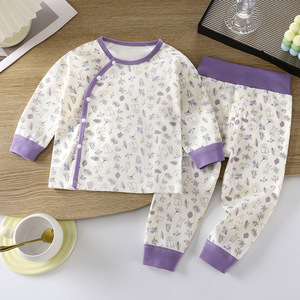 儿童无骨高腰护肚套装中小童100%棉家居服男童女童内衣秋衣裤睡衣