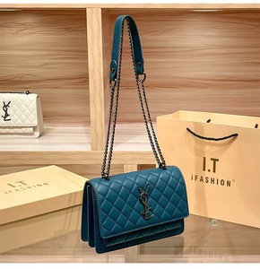 高级感真皮包包女2025新款菱格链条斜挎包时尚百搭小方包一件代发