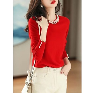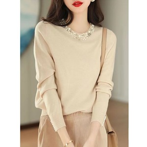 2025年秋冬季新款法式百搭重工钉珠羊毛针织衫洋气打底显瘦毛衣女