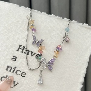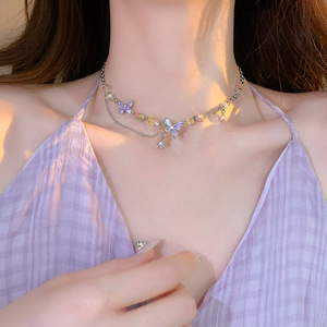 幻紫灵蝶彩色碎石蝴蝶拼接项链小众高级感锁骨链简约女配饰批发