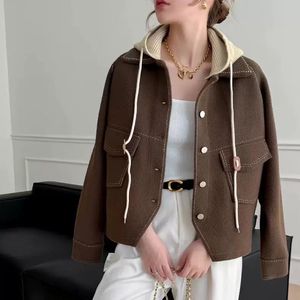 春秋新款加厚毛呢外套女宽松显瘦百搭休闲连帽高级感短款上衣开衫