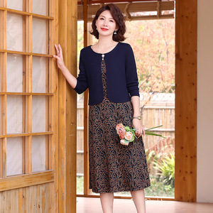 2025新款时尚气质显瘦裙子中年妈妈女装洋气长袖连衣裙拼接假两件