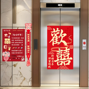 结婚电梯告示喜字贴喜糖贴婚礼喜事小区告知贴纸囍字墙面装饰布置