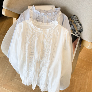 2025宫廷风花边领条纹衬衫2025秋季新款法式温柔百搭气质上衣