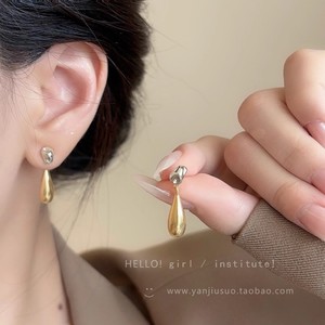 轻奢小众高级感双色水滴形耳环女时尚百搭气质磨砂拉丝小豆豆耳钉