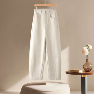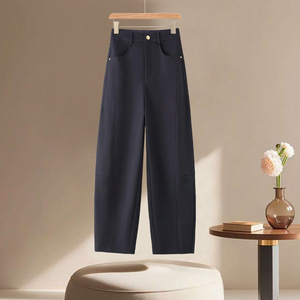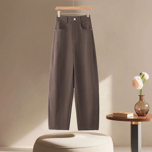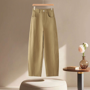 米杏色休闲哪吒裤女小个子2025新款春秋季后松紧百搭窄版弯刀裤子