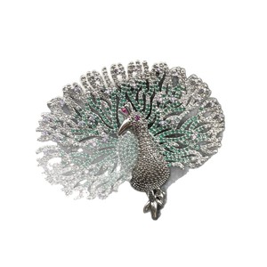 跨境新品奢华高定款优雅孔雀胸针女渐变彩半宝石礼服胸花珠宝配饰