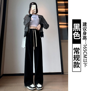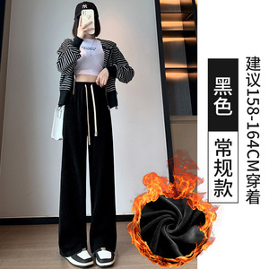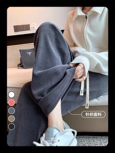 灰色针织阔腿裤女秋冬加绒高腰直筒宽松显瘦垂感欧棉绒拖地休闲裤
