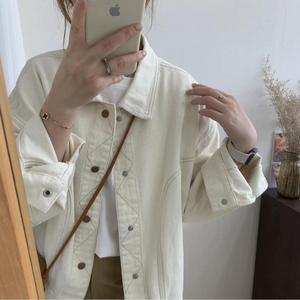 重磅品质!水洗斜纹棉百搭宽松牛仔外套女明线设计短款夹克上衣春