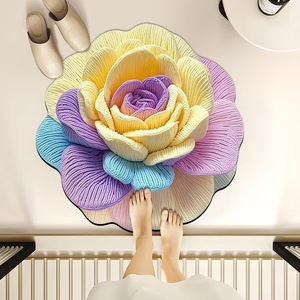 创意白菜花朵异形北欧家用客厅茶几水晶绒地垫入户门脚垫床边地毯