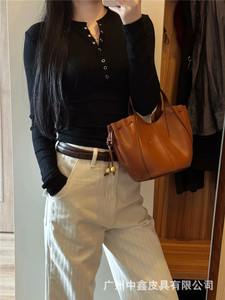 跨境女包2025新款时尚大容量托特包深棕黄色吊带串珠手提斜挎包女