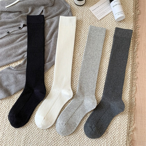 秋冬新款纯棉小腿袜子女士纯色美腿百搭微压显瘦长筒袜简约韩版