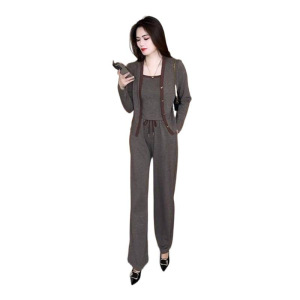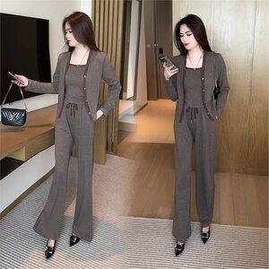 三件套早秋2025新款洋气秋季时尚背心开衫减龄休闲阔腿裤套装