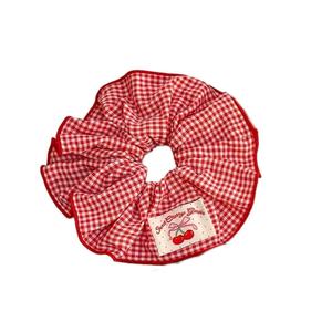 韩系可爱格纹樱桃蝴蝶结大肠发圈头绳少女百搭超大丸子头发饰扎头
