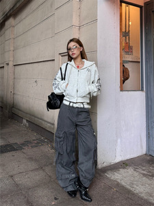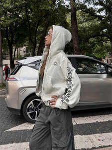 美式复古印花连帽卫衣外套女装秋季新款辣妹休闲潮流百搭开衫外套