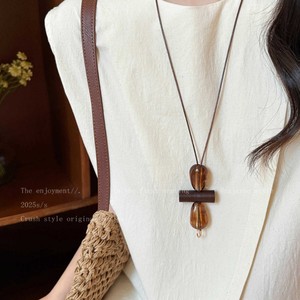 新中式镂空木质圆形吊坠项链女民族风小众设计毛衣链复古挂脖配饰