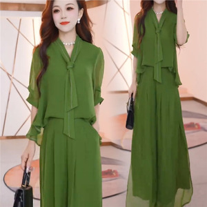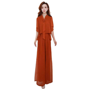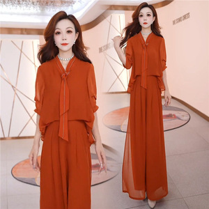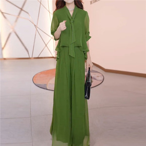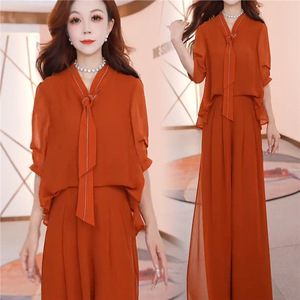 时尚气质雪纺套装女2025秋季新款洋气不规则衬衫高腰阔腿裤两件套