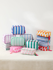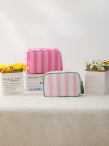 跨境新款条纹化妆包简约清新化妆品旅行便携洗漱淘宝口红收纳包