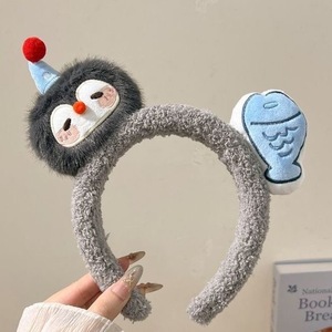 可爱毛绒企鹅小鱼发箍女卡通洗脸化妆压发头箍2025年新款发卡头饰