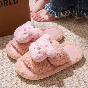 2025年新款卡通可爱平底毛毛棉拖鞋羊羔毛居家防滑可外穿棉鞋冬