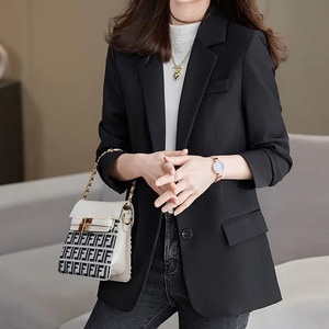 春秋季新款韩版气质时尚百搭设计感小众西服咖啡色小西装外套女潮