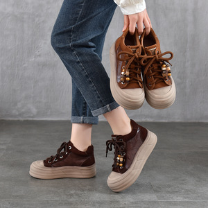 2025新款秋季百搭休闲真皮女鞋手工串珠包头系带马丁靴女式短靴子