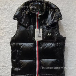 蒙家同款彩条棉服跨境坎肩棉衣连帽马甲同款男女情侣亮面背心棉服
