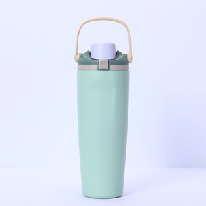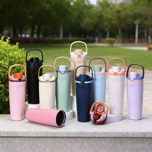 跨境弹跳锁盖30oz手提水果杯304不锈钢保温杯户外旅行双饮吸管杯