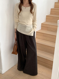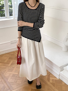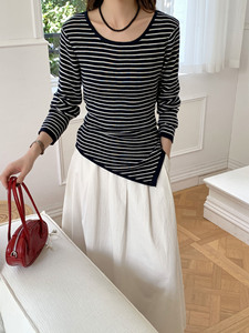 嘉织丨秋季新款收腰气质细针上衣 斜边系带优雅针织长袖 D108