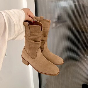 时尚女靴西部牛仔短靴粗跟尖头褶皱堆堆靴遮肉显瘦时装靴