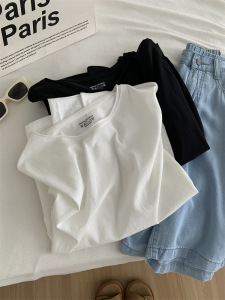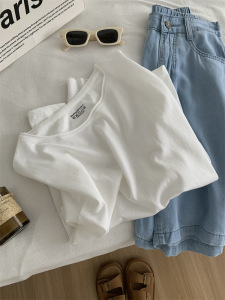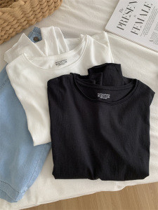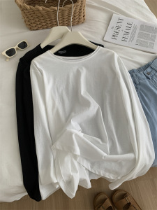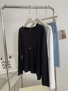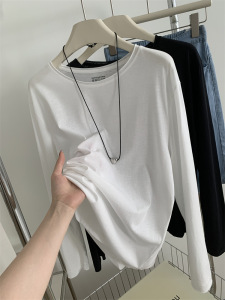 2025秋双层卷边圆领长袖T恤女早秋简约韩系垂感雪花棉纯色打底衫