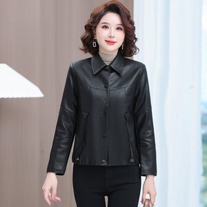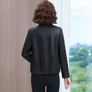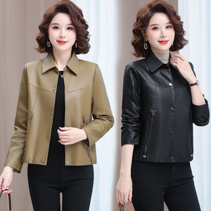 气质妈妈春秋装外套中年女洋气PU皮衣中老年秋冬时尚短款夹克上衣