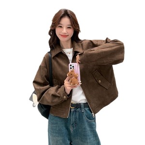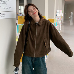 咖色美拉德麂皮绒外套女秋季2025新款美式复古小个子短款夹克上衣