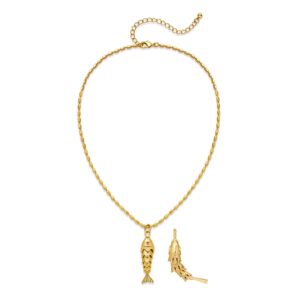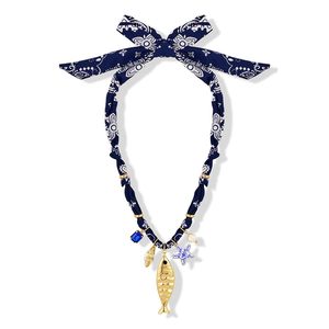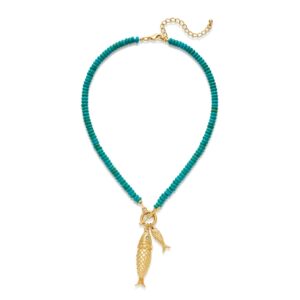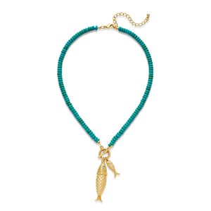 欧美跨境热销 黄铜真金电镀 波西米亚风时尚小鱼形吊坠串珠项链