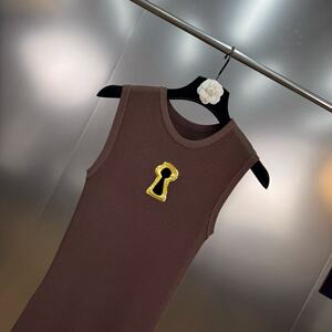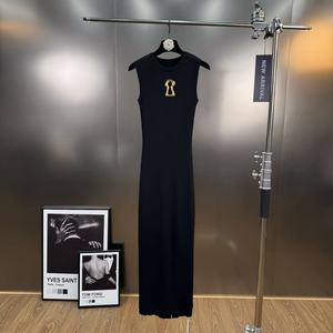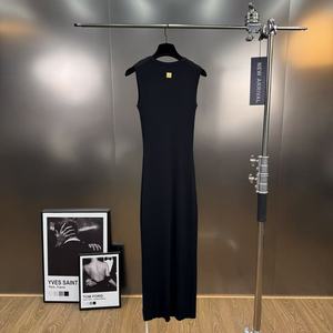 圆领无袖金属扣下开叉法式气质针织连衣裙修身显瘦