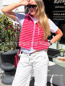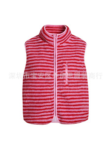 2025亚马逊独立站新款条纹背心立领条纹秋冬马甲休闲显瘦无袖开衫