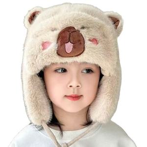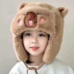 新款儿童帽子男孩可爱卡皮巴拉毛绒帽女童冬季加厚防寒保暖护耳帽