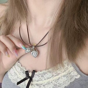 锆石爱心褶皱纹路吊坠项链个性冷淡风毛衣链时尚简约饰品女高级感