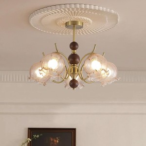 法式田园风客厅卧室主灯书房中古复古护眼灯餐厅创意花朵玻璃吊灯