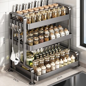 厨房置物架置物架多功能调料品架厨房盐调味罐收纳盒台面调料架子