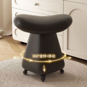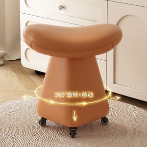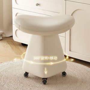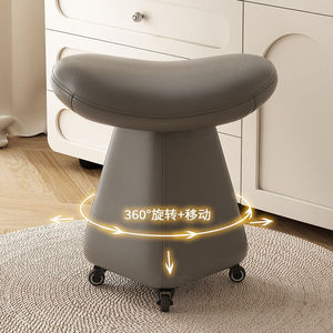 主卧网红梳妆台化妆凳滑轮旋转轻奢高级中古奶油风实木真皮梳妆凳