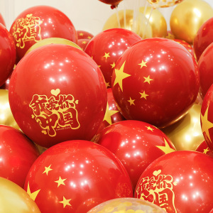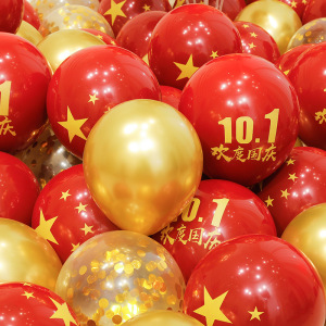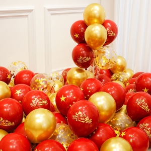 S03双层喜迎国庆15+2双层五角星15+铬金10+亮片金10=50个国庆乳胶混装组合