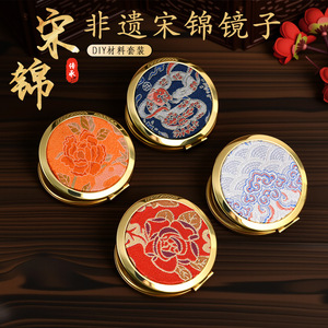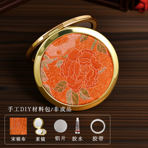 七夕节宋锦小镜子手工DIY材料包双面化妆镜新中式随身携带礼品批