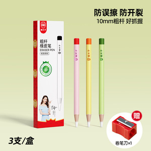 【防误擦】粗杆橡皮笔-3支装