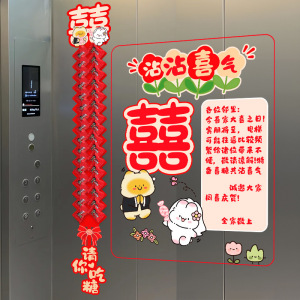 结婚电梯门喜字专用电梯告示贴喜糖婚礼摆件布置囍字贴纸婚庆用品